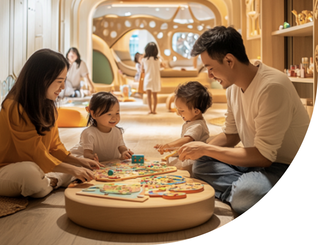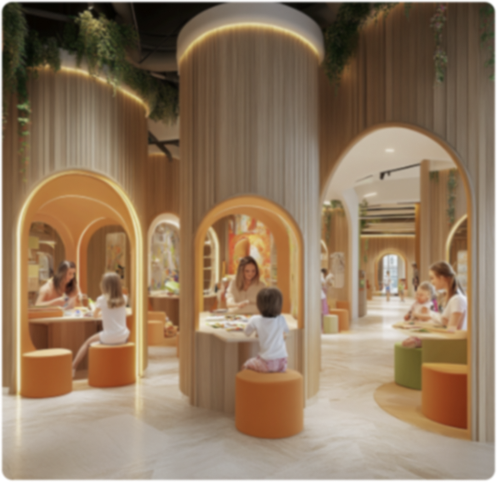 Purpose-built spaces designed to nurture families with young children ages 0-5 through curated experiences promoting wellness, bonding, and growth.